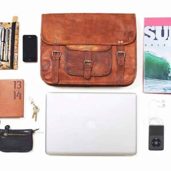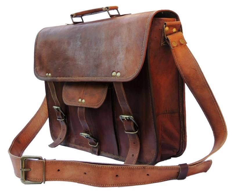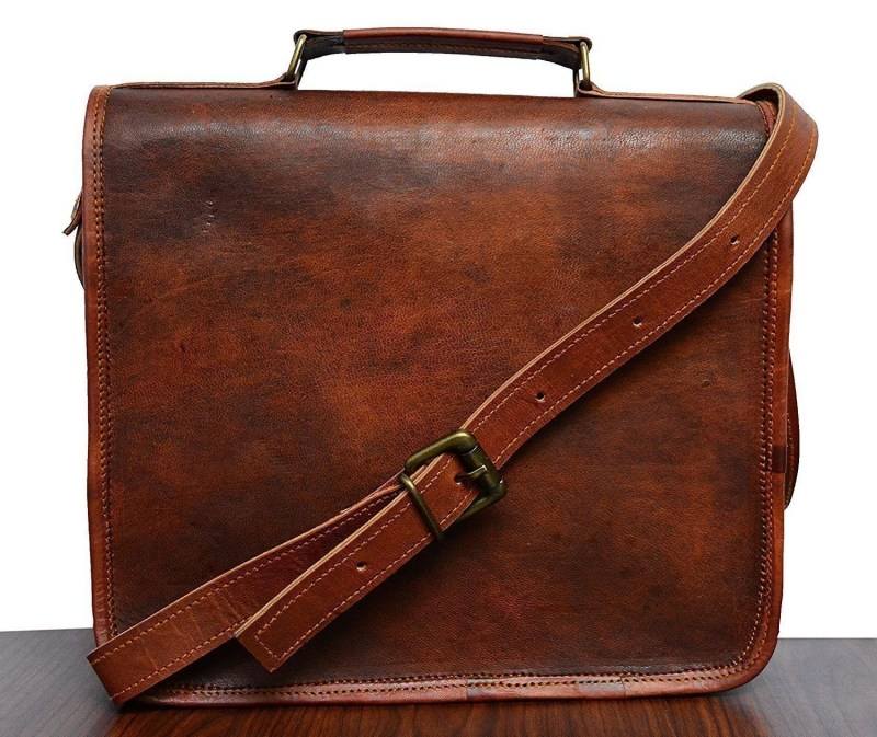 High Quality 100% Genuine Buffalo Leather Satchel Bag 13 Inch Single Pocket Double Strip Handcrafted 100% Genuine Bag Laptop