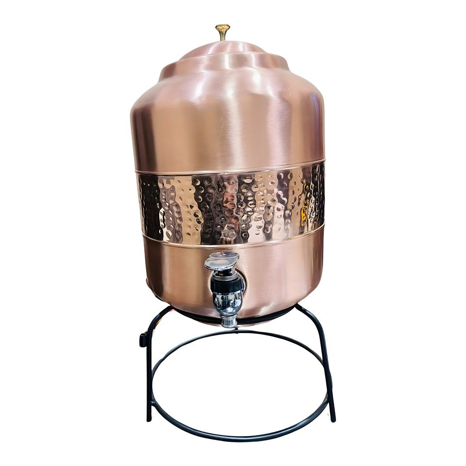 High Quality 100% Pure Copper Tank Dispenser with Copper Glass Iron Stand Luxury for Home Decoration Hammered Water Storage Pot