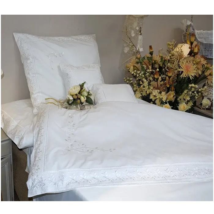 High Quality 100% White Cotton Bedding Set Custom Embroidered with Floral Design Duvet Cover Full Set for Home Hotel Wedding