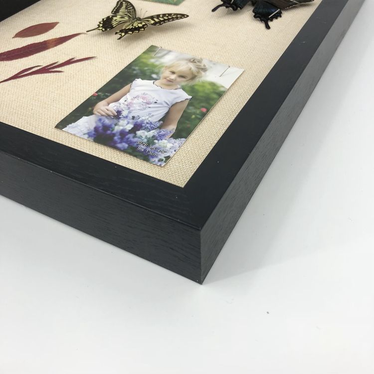 High Quality 11x14 Inch Custom butterfly Specimen Wood Shadow Box Photo Frame with Linen Background Wholesale
