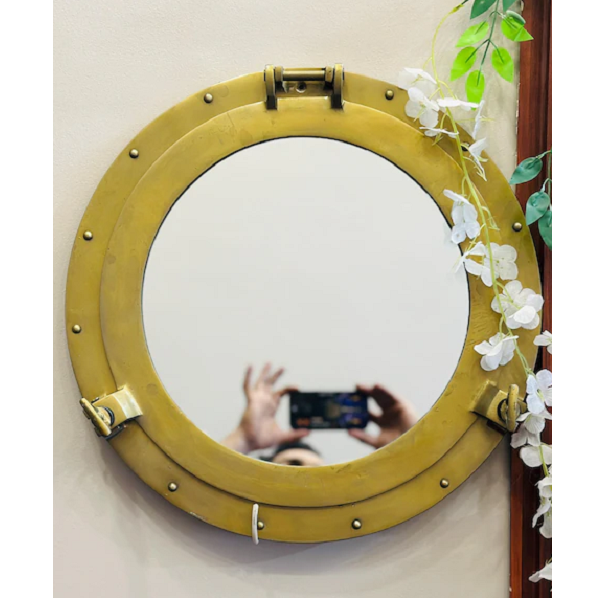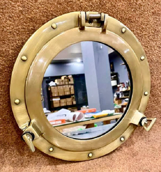 High Quality 12\" Antique Traditional Nautical Brown Aluminium Wall Mirror Porthole Style Ship Decor Metal Crafts