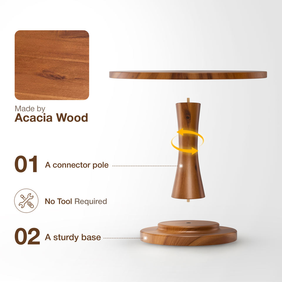 High Quality 12-Inch Acacia Wooden Cake Stand for Party Wedding Event Desserts Kitchen Accessories for Cake Decorating