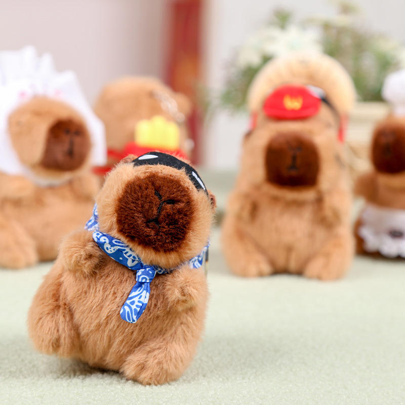 High Quality 12cm Cotton Mesh Capybara Keychains Unisex Cute Cooker Pendants Claw Machine Toys Stress Relief Wholesale