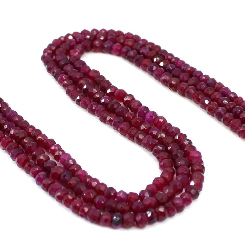 High Quality 13-Inch Faceted Rondelle Red Stone Beads 3-5mm Ruby Corundum Third Party Certified for Jewelry Making