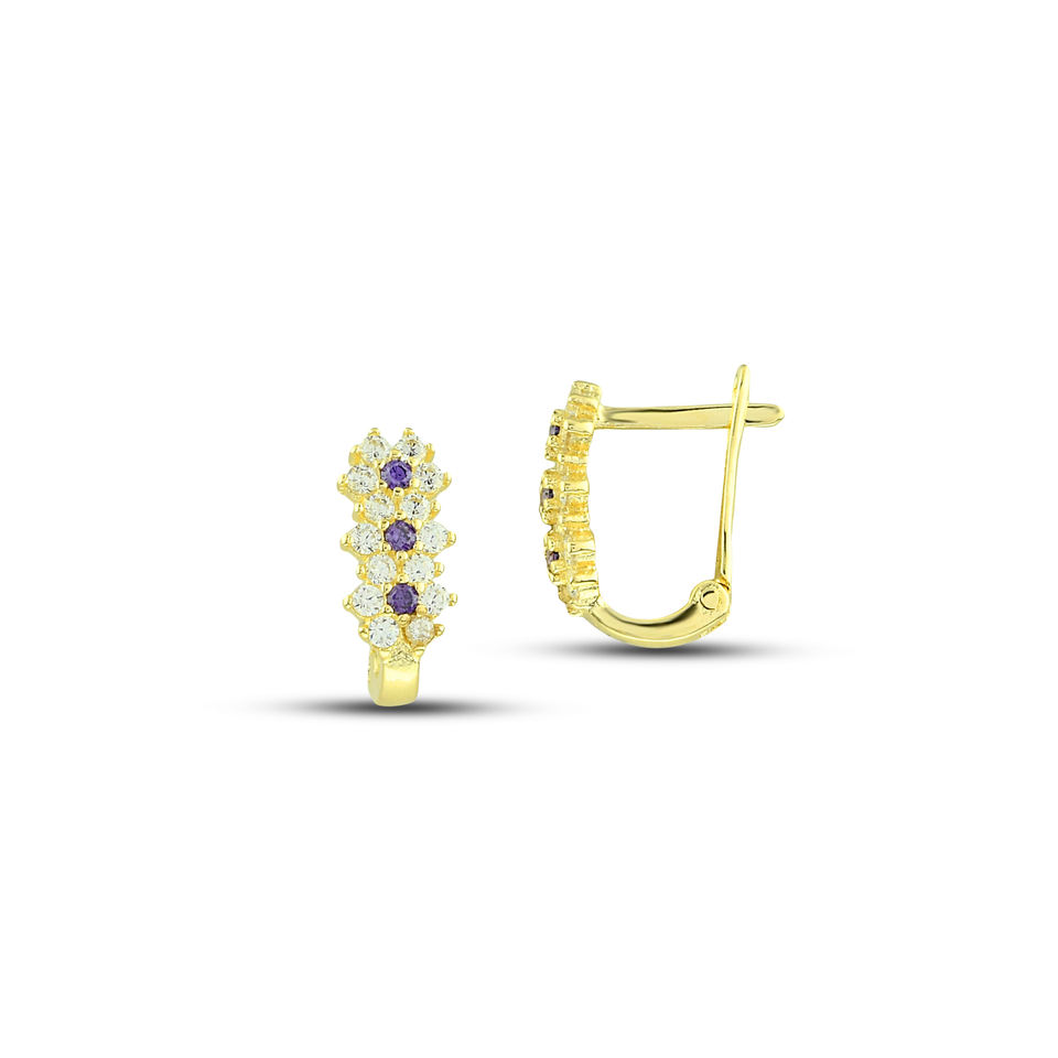 High Quality 14K Gold Plated Flower Zircon Clip-on Drop Earrings Kids Trendy Style Fine Enamel Work Handmade Turkey