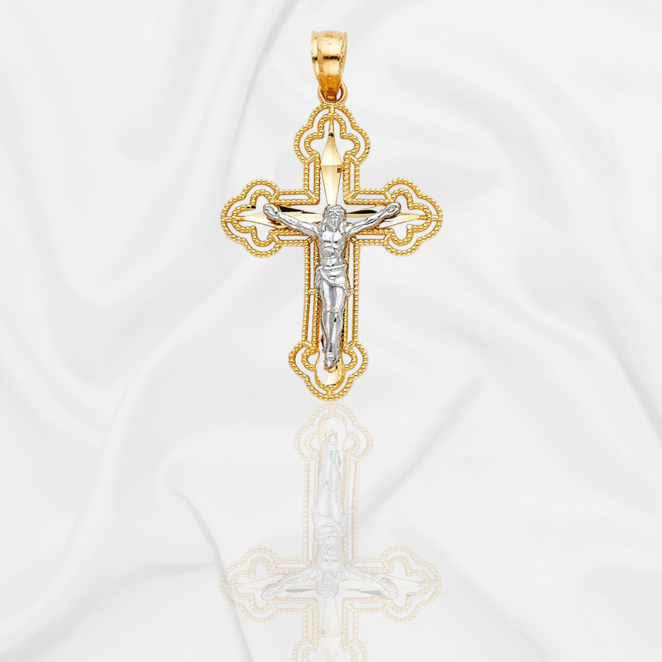 High Quality 14K Yellow Gold Two-Tone Crucifix Cross Pendant Diamond-Studded Christian Religious Symbol Children's Fashion Charm