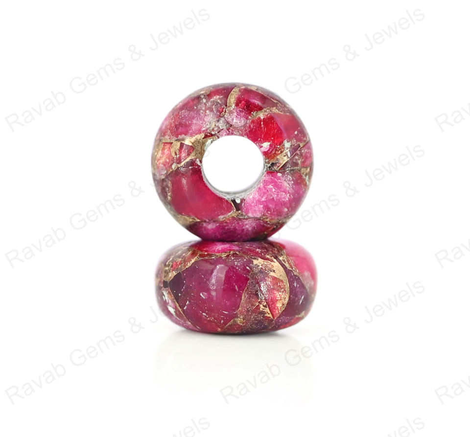 High Quality 14X8mm Pink Ruby Corundum Rondelle Natural Quartz Loose Gemstone Beads 5mm Big Hole Fashion Jewelry Making