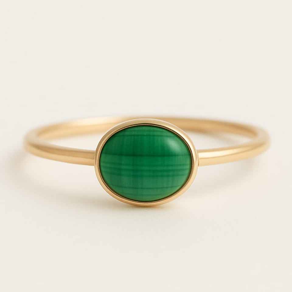 High Quality 14k Gold Ring with Trendy Malachite Green Gemstone Excellent for Women and Girls for Weddings