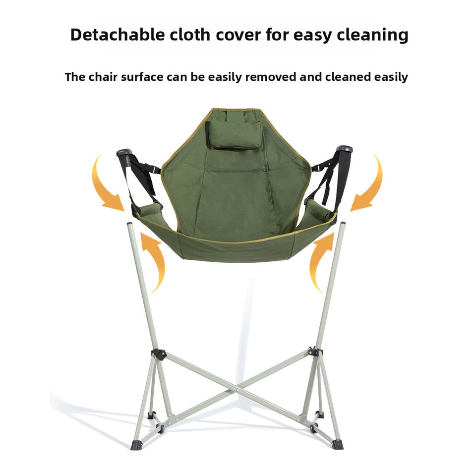 High Quality 150KG Heavy Duty Reinforced X-Brace Steel Frame Easy Folding Camping Rocking Chair