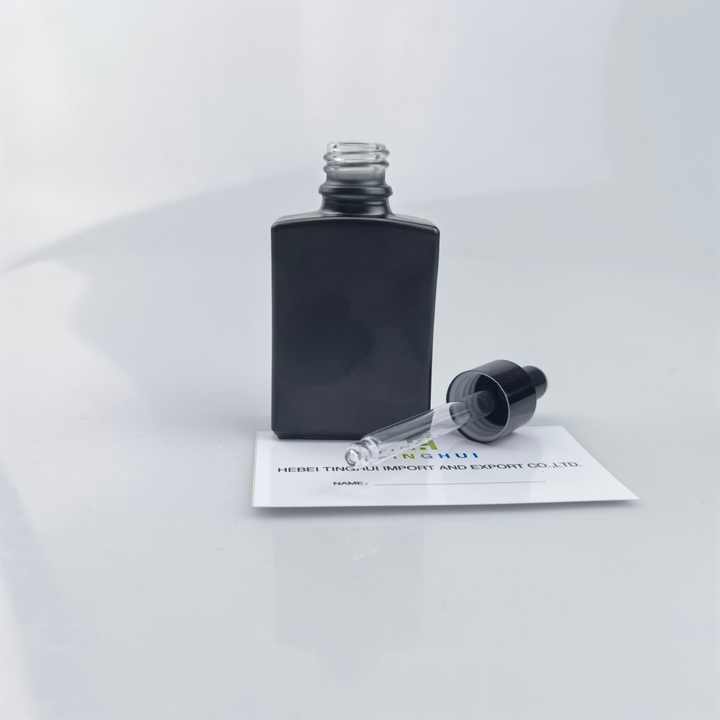 High Quality 15ml 30ml 50ml 100ml Square Matte Black Glass Essential Oil Dropper Bottle