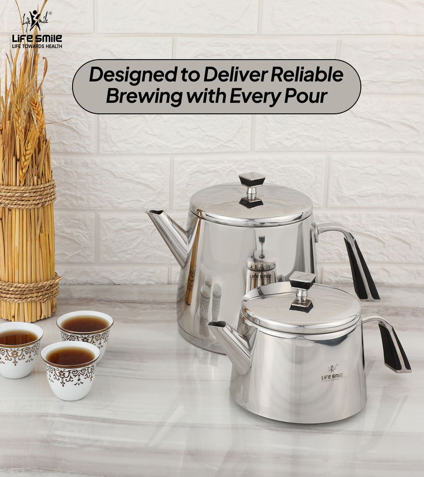 High Quality 18/10 Stainless Steel Tea Pot Set with Induction Compatible Base and Silicone Insulated Handles