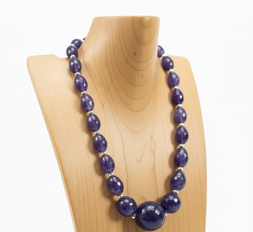 High Quality 18-Inch Silver 925 Freshwater Beaded Necklace for Women Hand Knotted with Natural Amethyst Stone Fashion Accessory