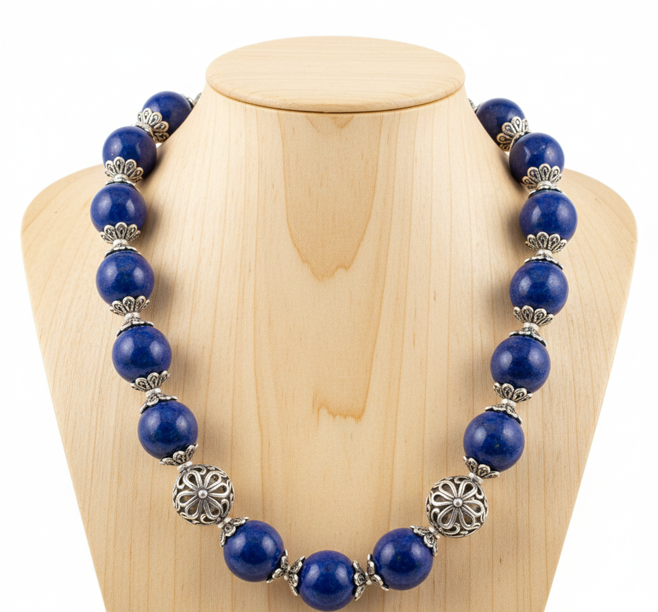 High Quality 18-Inch Tibetan Silver Geometric Beaded Bracelet & Necklace Unisex Hand-Knotted Trendy Natural Lapis Lazuli Gift