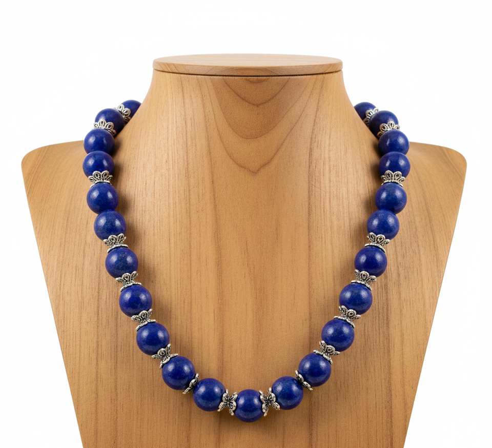 High Quality 18-Inch Tibetan Silver Gold Geometric Freshwater Lapis Lazuli Stone Beaded Unisex Necklace Hand Knotted Trendy Gift