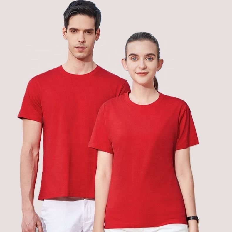 High Quality 180gsm 60% Cotton 40% Poly CVC Unisex Basic Casual Minimalist Tee Shirt Solid Color Short Sleeve Crew Neck T-shirt