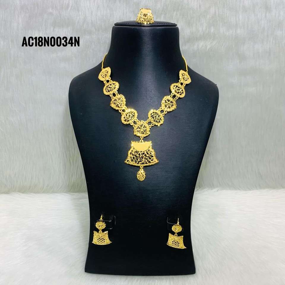 High Quality 18K Gold Plated One Gram Jewelry Fashionable Flower Pattern Short Necklace Set Earrings Rings Classic for Women