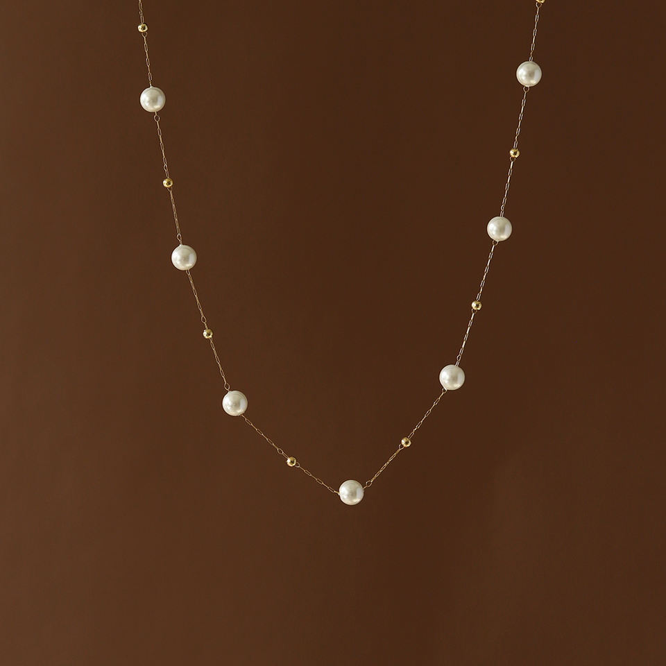 High Quality 18K Gold Plated Geometric Link Chain Necklace Stainless Steel Imitation Pearls Stylish Trendy Custom Logo Unisex
