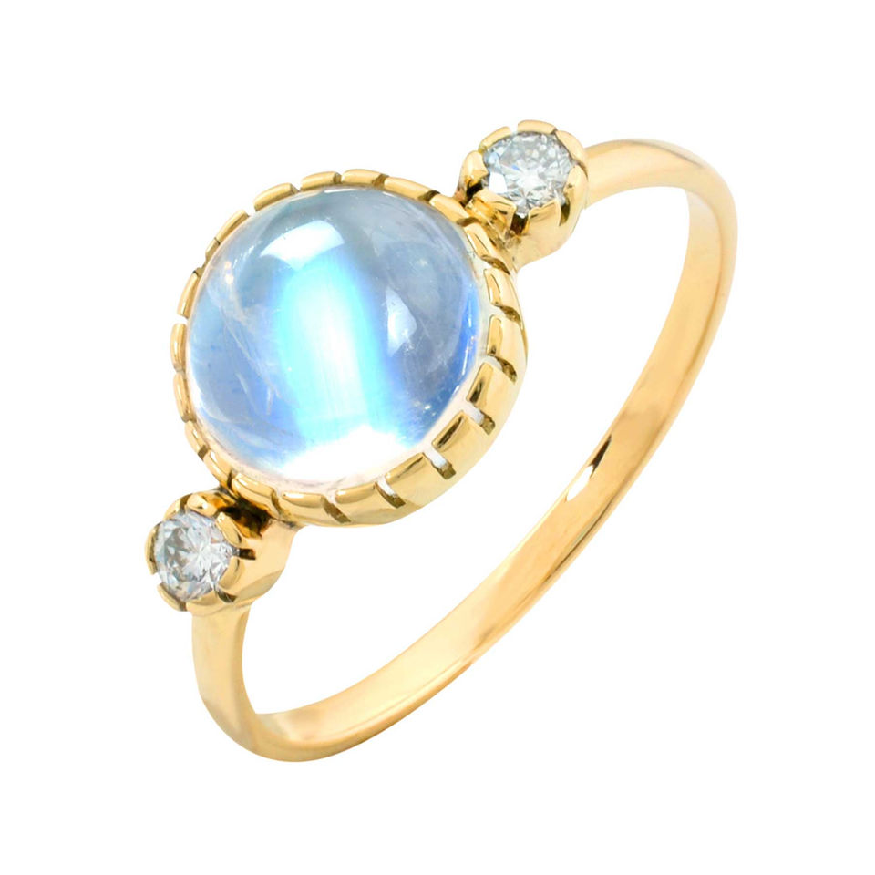 High Quality 2.11 Ct Rainbow Moonstone Diamond Accented Pure Gold Wedding Rings for Women Bezel Setting Inlay for Parties