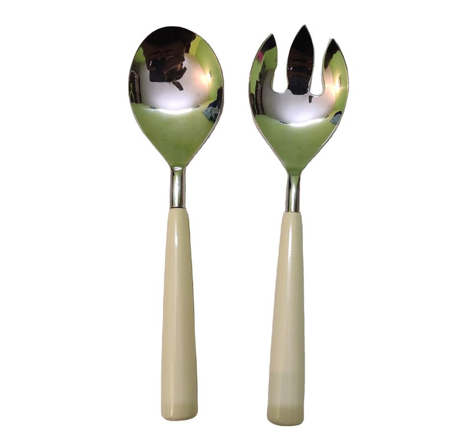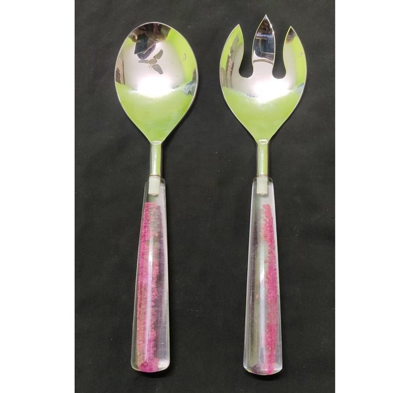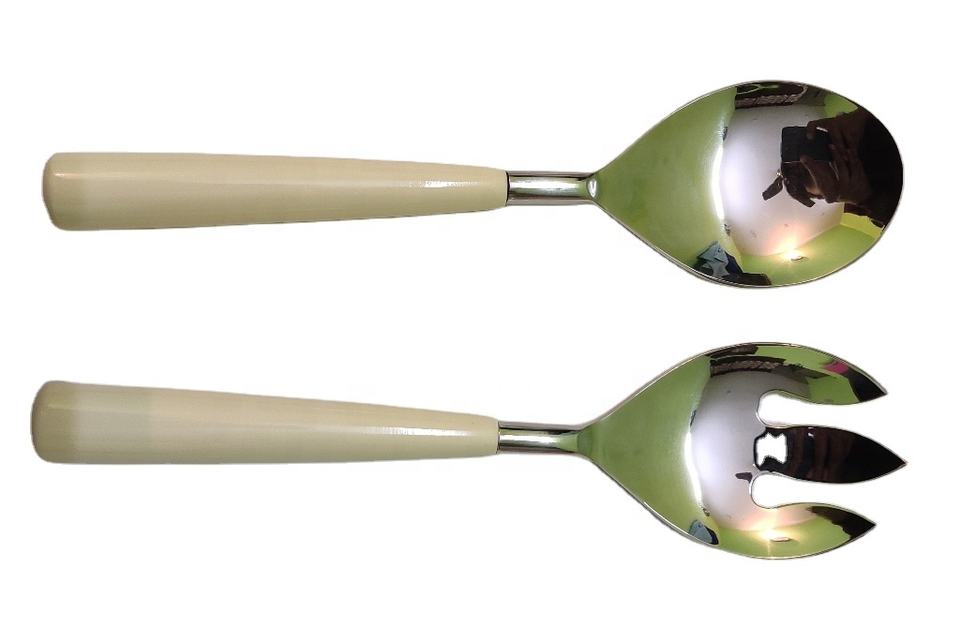 High Quality 2-Piece Salad Server Spoon Set Beautiful Ivory Multi-Color Epoxy MOP Measuring Best Price Stainless Metal Camping