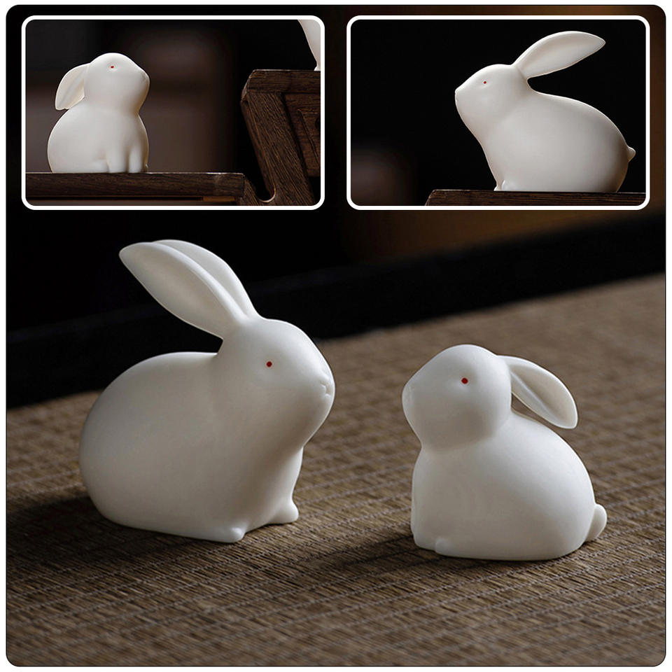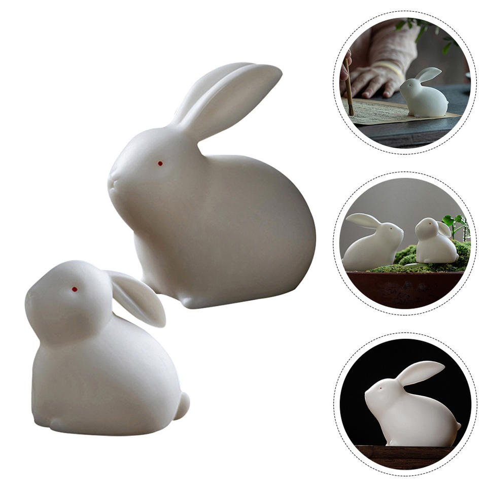 High Quality 2-Piece White Rabbit Sculpture Handmade Premium Metal Decorative Objects Hot Selling Rabbit Showpiece Models