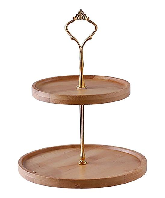 High Quality 2-Tier Bamboo Wood Metal Plate Stand Gold Brown Shining Polish for Cupcakes Desserts Dishwasher Safe for Parties