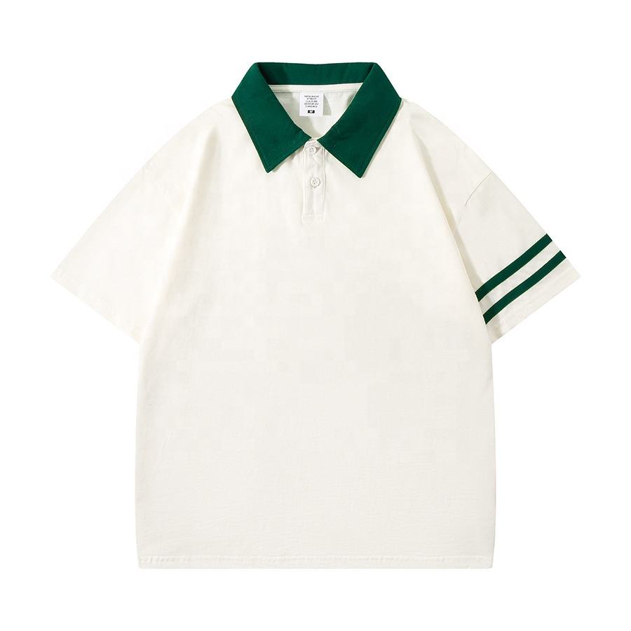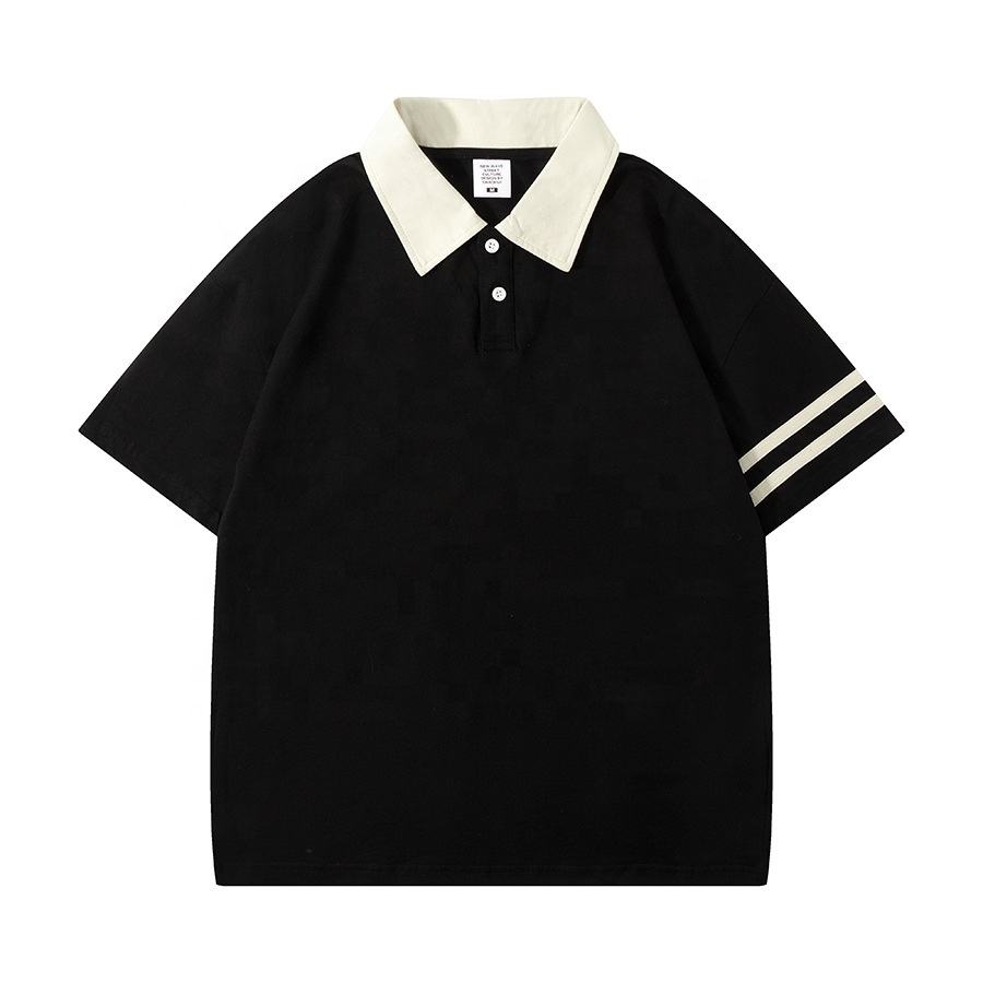 High Quality 210gsm 100% Cotton Unisex Essential Striped Golf Shirts Spliced Collar Button Polo For Men Women Logo Embroidery