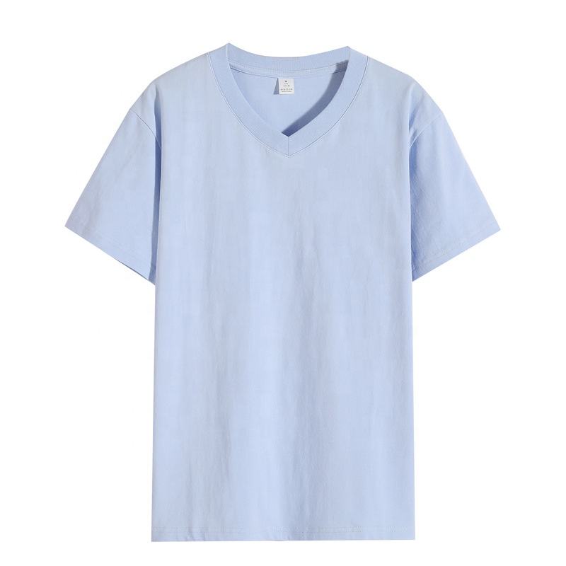 High Quality 210gsm 100% Cotton Unisex Summer Casual Tops Regular Fit V-Neck Tees Essential Solid Blank T-Shirts For Men Women