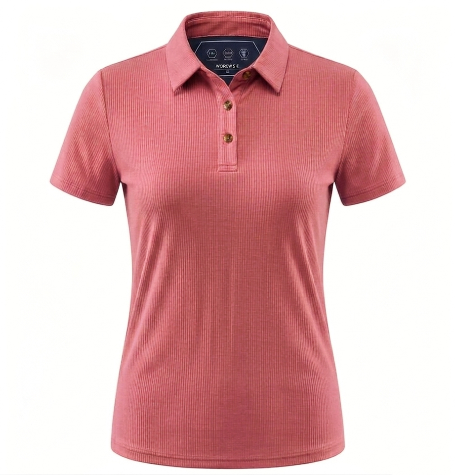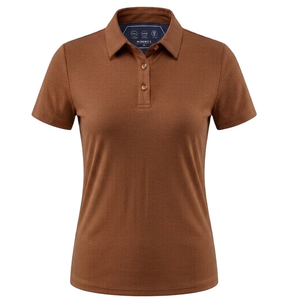 High Quality 220 GSM Rib Knit Women Polo Shirt Smooth Stretch Fabric Brown Tone Custom Logo Embroidery Printing Women Polo Shirt