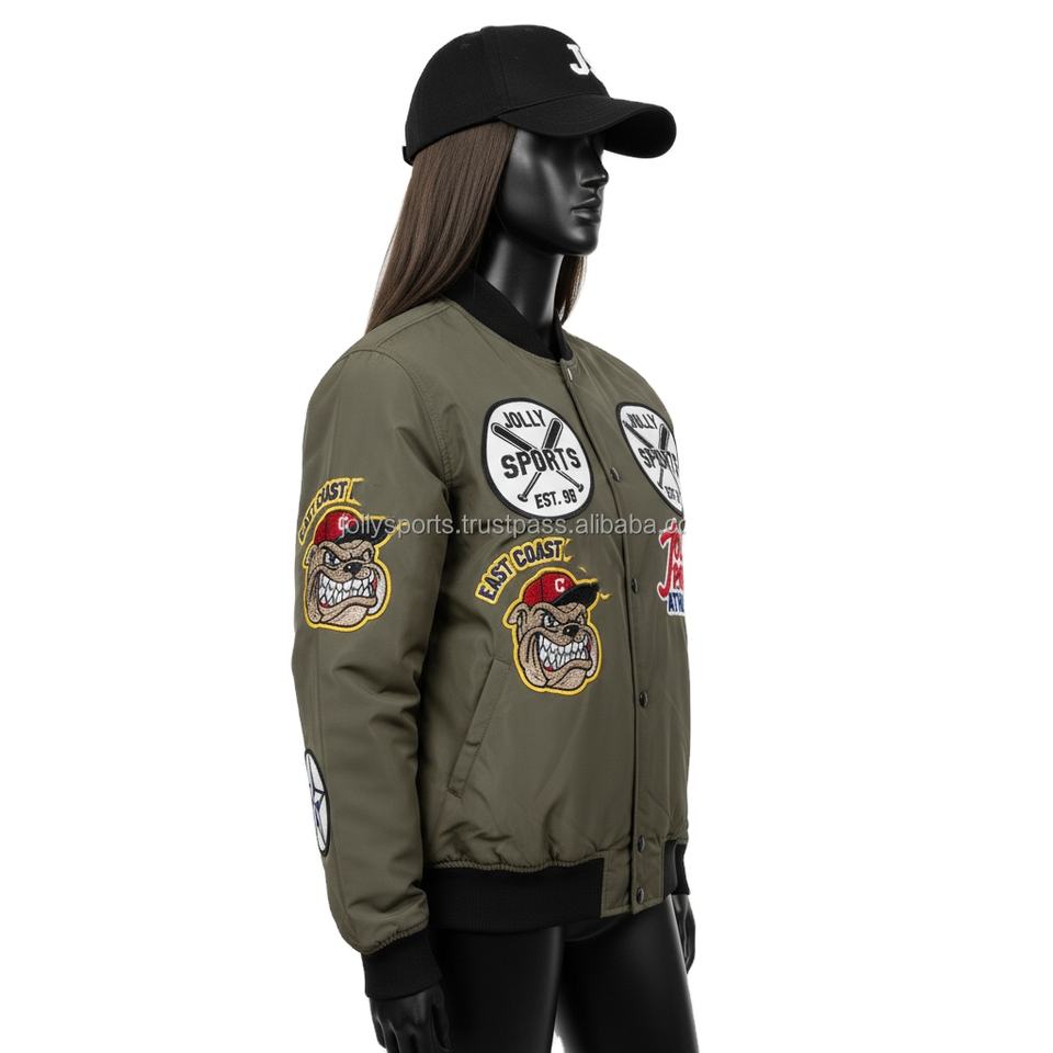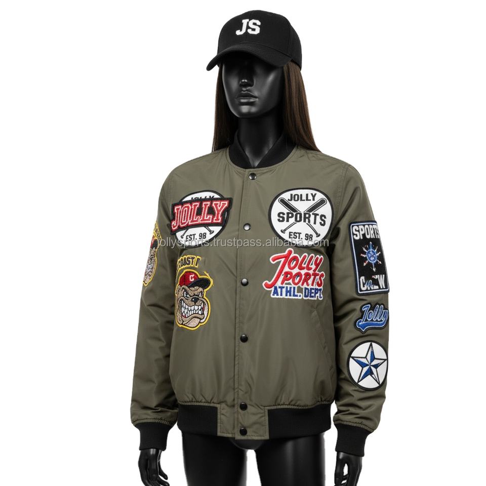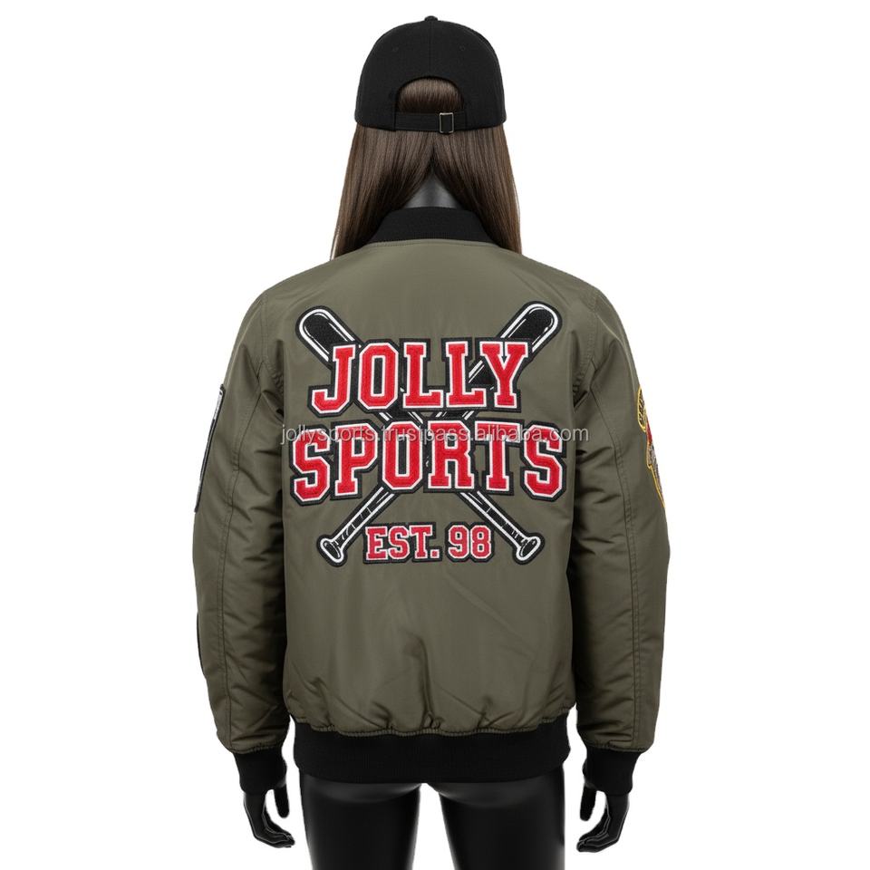 High Quality 240 GSM Women Bomber Jacket Olive Green Polyester Fabric with Embroidery Patch Custom Log Women's Bomber Jackets