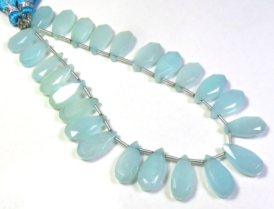 High Quality 24Pcs Natural Blue Amazonite Faceted Crystals 15x7.5mm Pear Cut Beads 8 Strand Loose Gemstones Quartz for Necklace