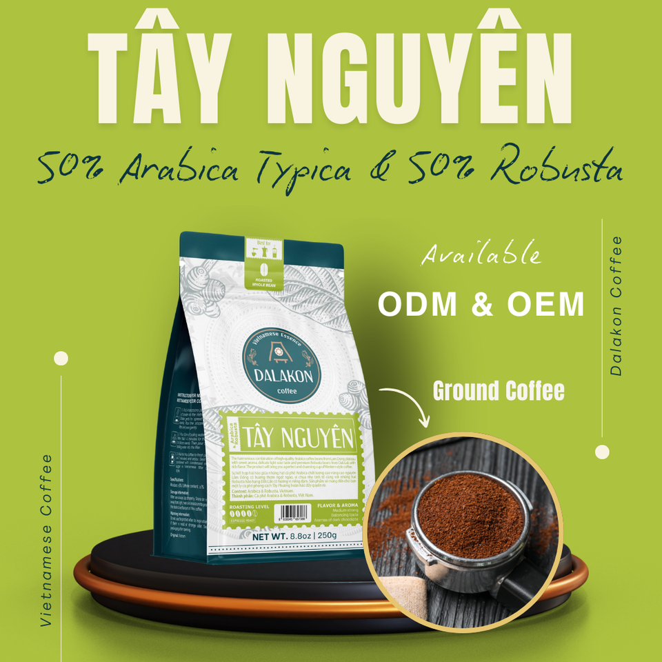 High Quality 250g Dalakon Tay Nguyen Caffeinated Ground Coffee Italian Roast Premium Mellow Taste Vietnam Espresso 50% Arabica