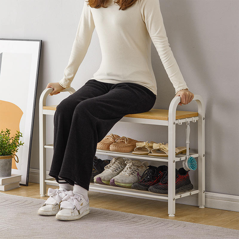 High Quality 3-Tier Carbon Steel Metal+Wood Detachable Design Shoe Rack Narrow Entryway Cabinet Custom Designs Living Room Use