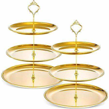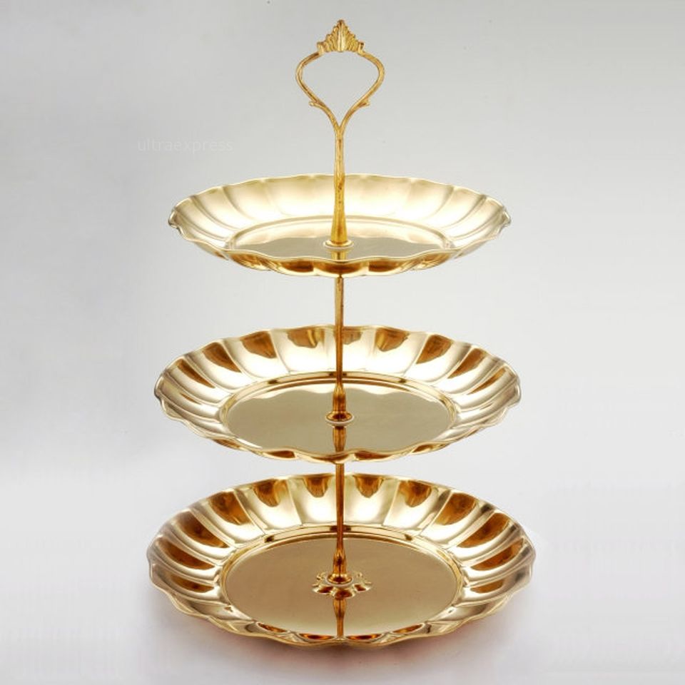 High Quality 3-Tier Gold Wedding Cake Stand Latest Design Round Metal Brass Plate with Rotate Border for Dessert and Cakes