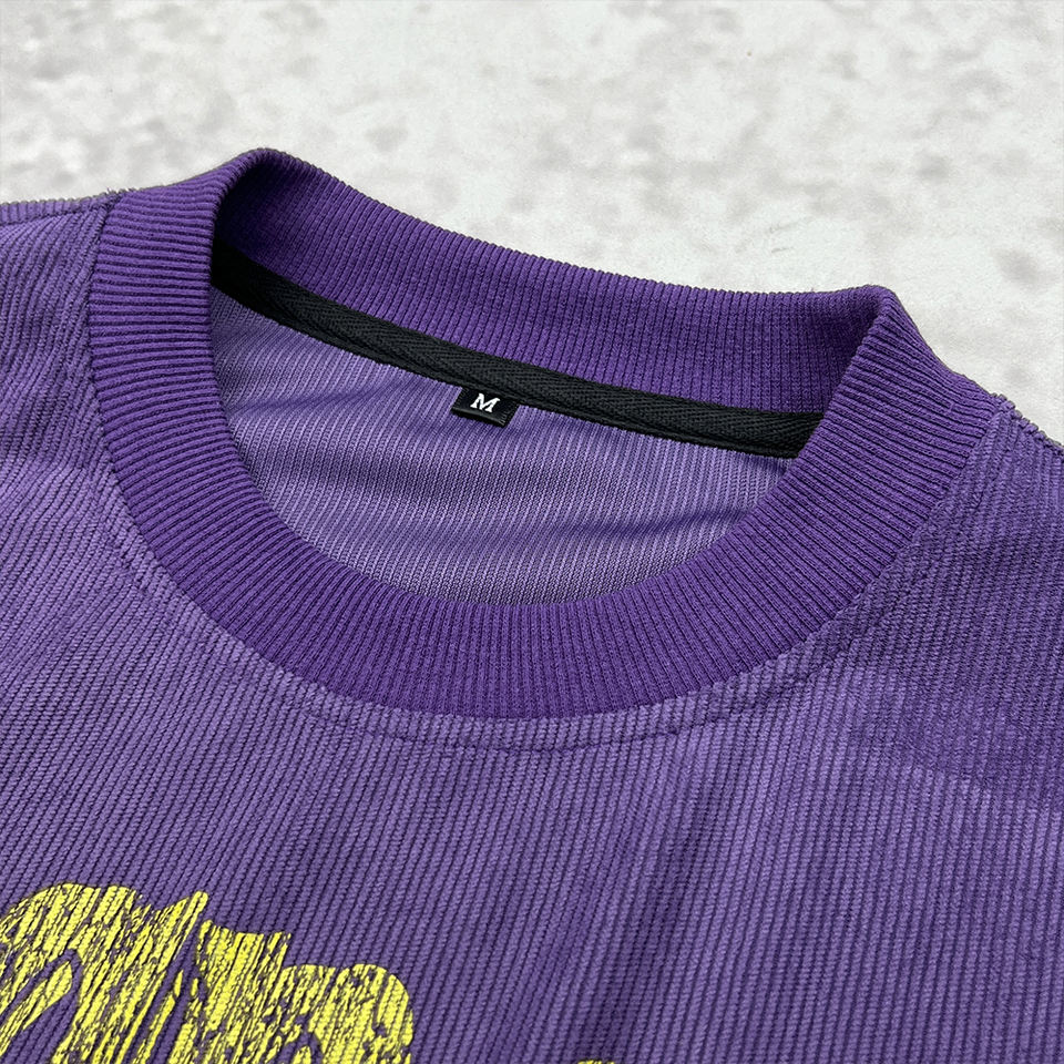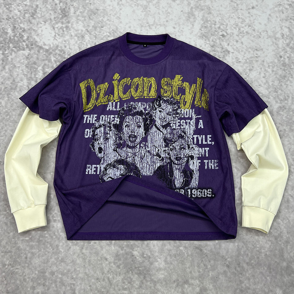 High Quality 300 Gsm Heavy Weight Corduroy Vintage Boxy T-Shirt Custom Logo Cotton Double Layer Long Sleeve T Shirts For Men