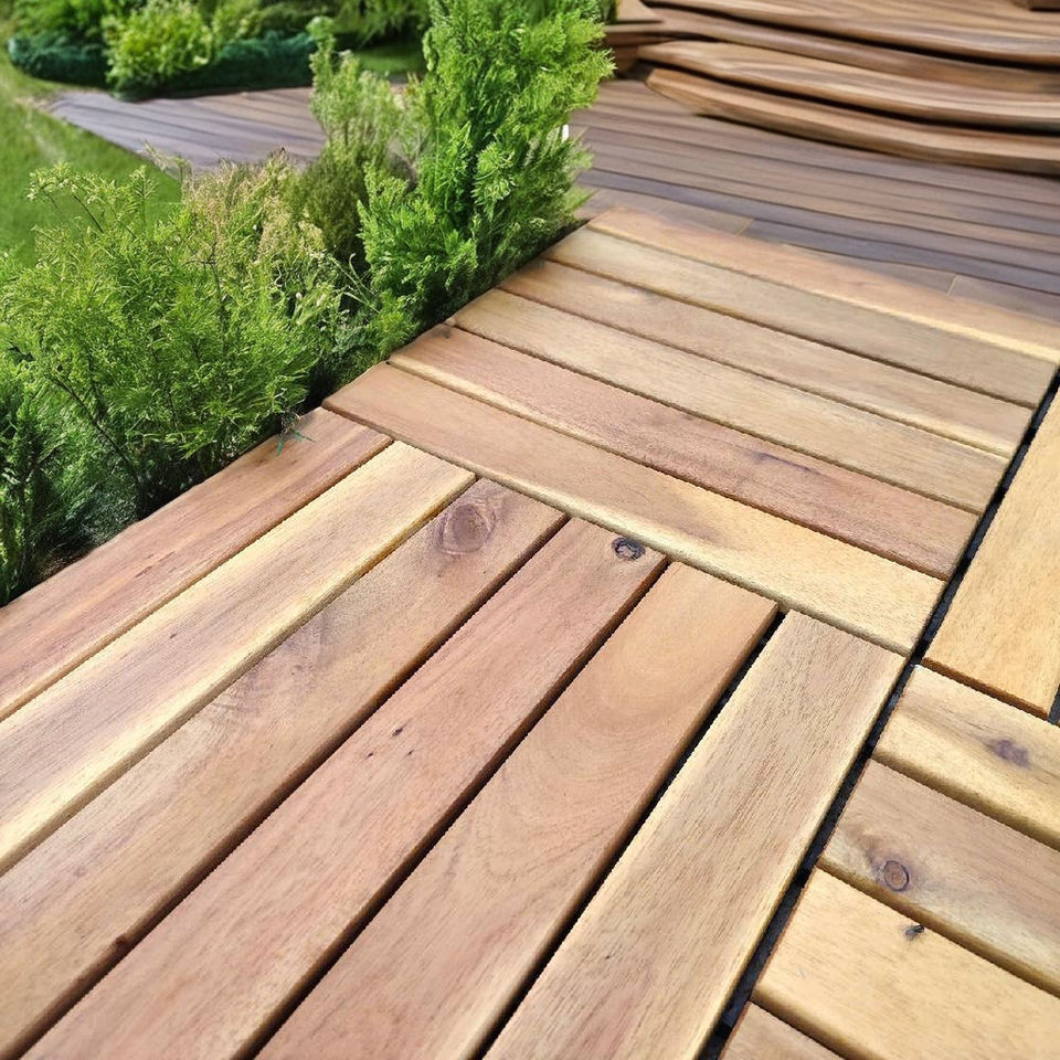 High Quality Modern Acacia Wood Flooring 300 X 300 mm Interlocking Outdoor Deck Tiles for Balcony Garden Patio Decking