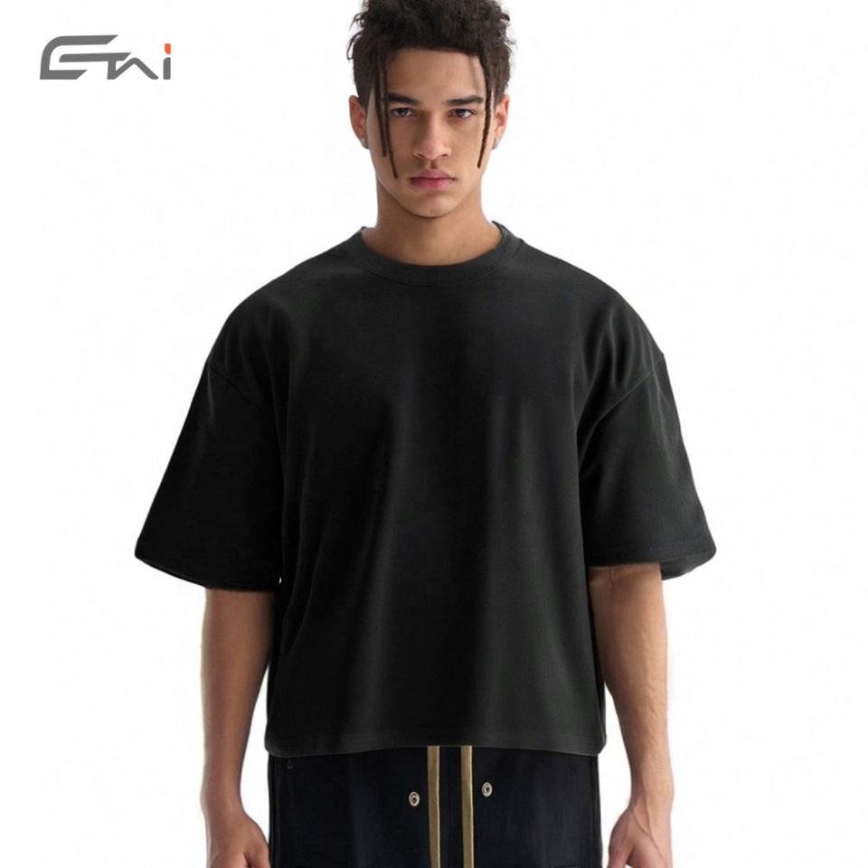 High Quality 300gsm Crop Length T-shirt 100% Cotton Streetwear Oversized Tshirt Blank Boxy Fit Tee Custom Logo T Shirt for Men