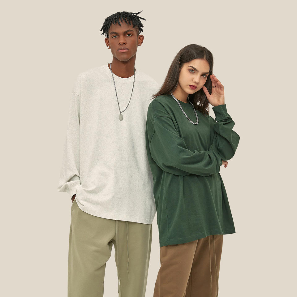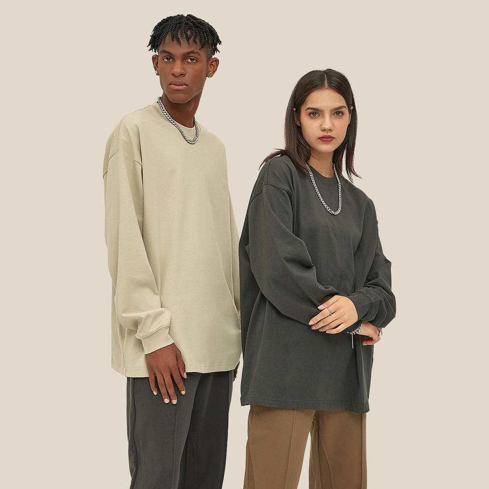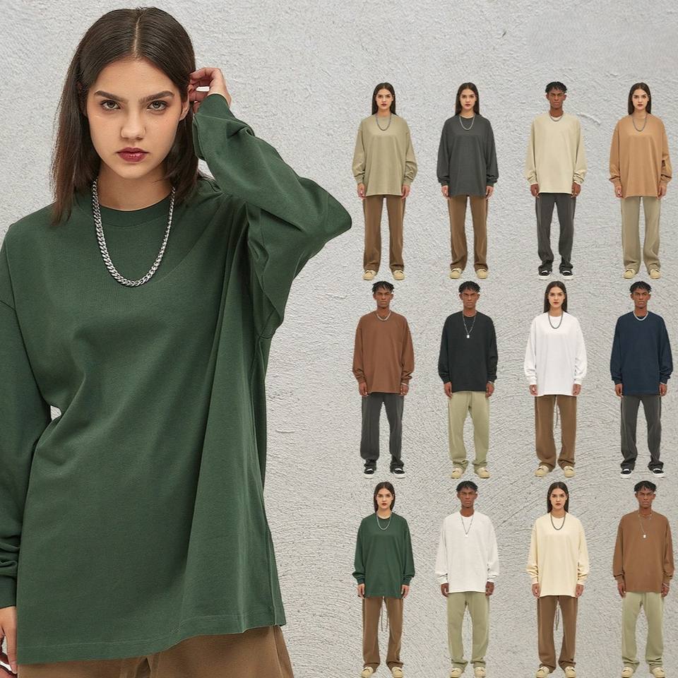 High Quality 305gsm 100% Cotton Unisex Korean Style Fall Fashion Couple Matching Shirt Oversized Long Sleeve Pullover Sweatshirt