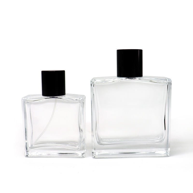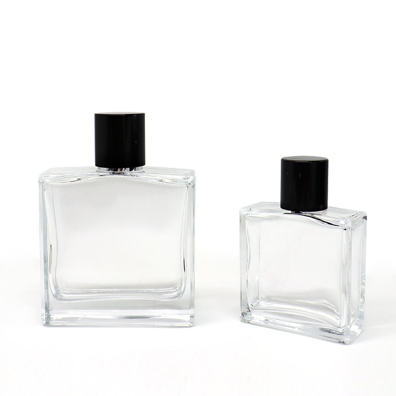 High Quality 30ml 50ml 100ml clear Transparent Flat square Empty Perfume Spray Glass Bottle with Pump Sprayer for Cosmetic