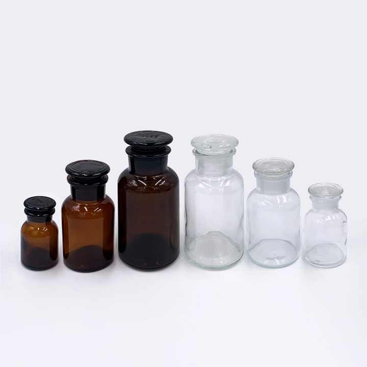 High Quality 30ml 60ml 125ml 250ml 500ml 1000ml clear Apothecary Bottles Lab glassware Reagent Wide Mouth Bottle with Stoppers