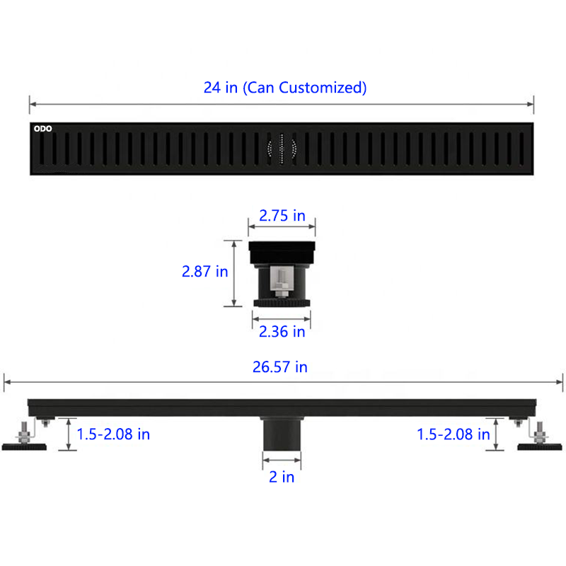 High Quality 32 Inch 304 Stainless Steel Floor Drain Matte Black Desague De Ducha Capsule Pattern Cover Shower Floor Drain