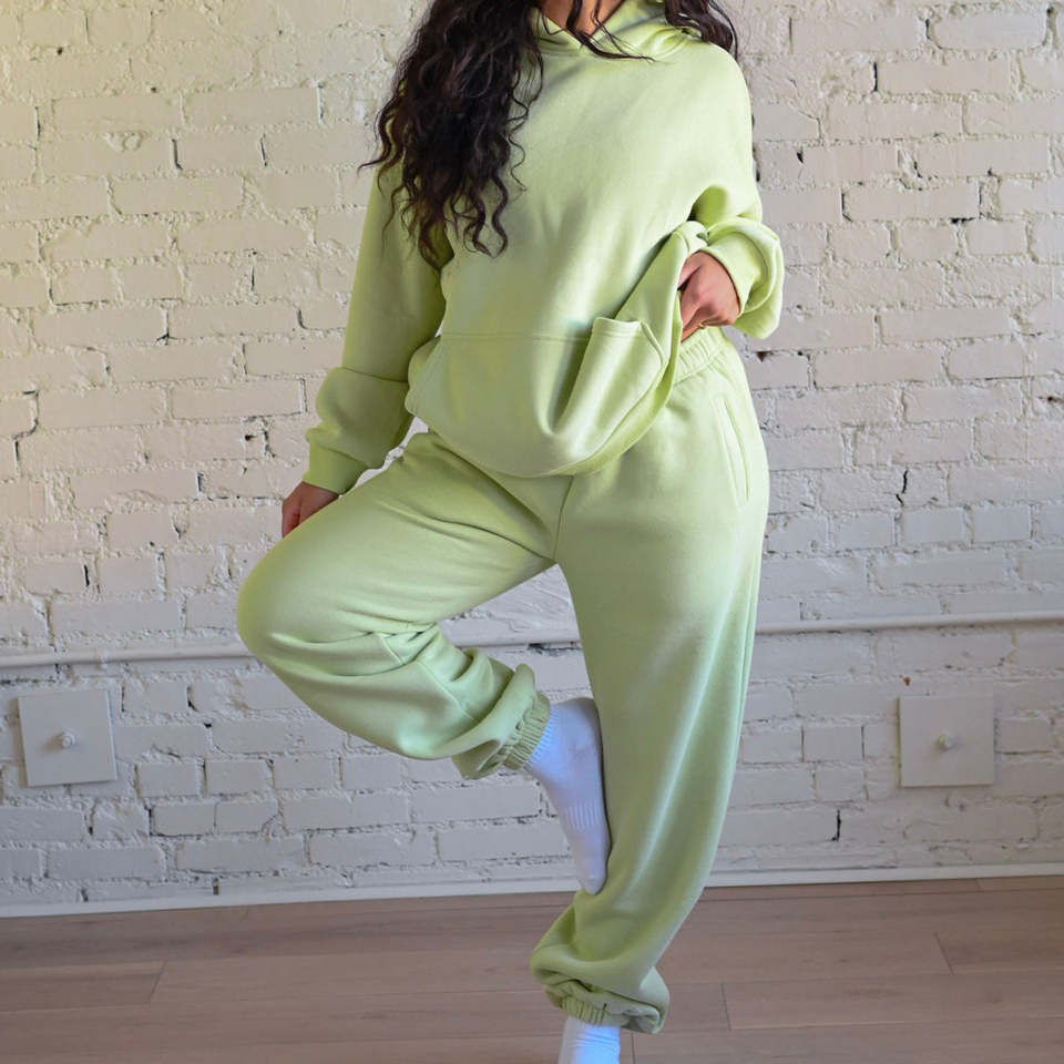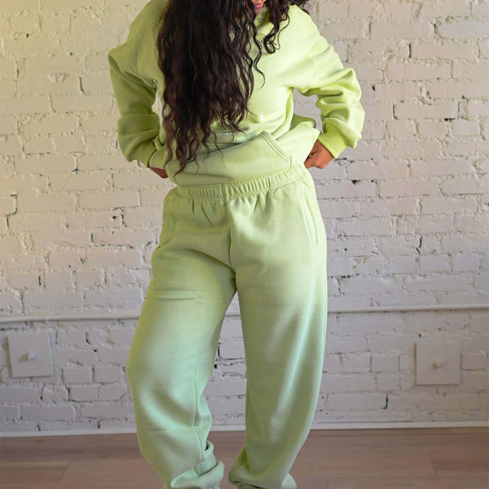 High Quality 340gsm Fleece Winter Solid Color Long Sleeve Hooded Sweatshirt Set Fashion Casual Long Pants Jogging Tracksuit