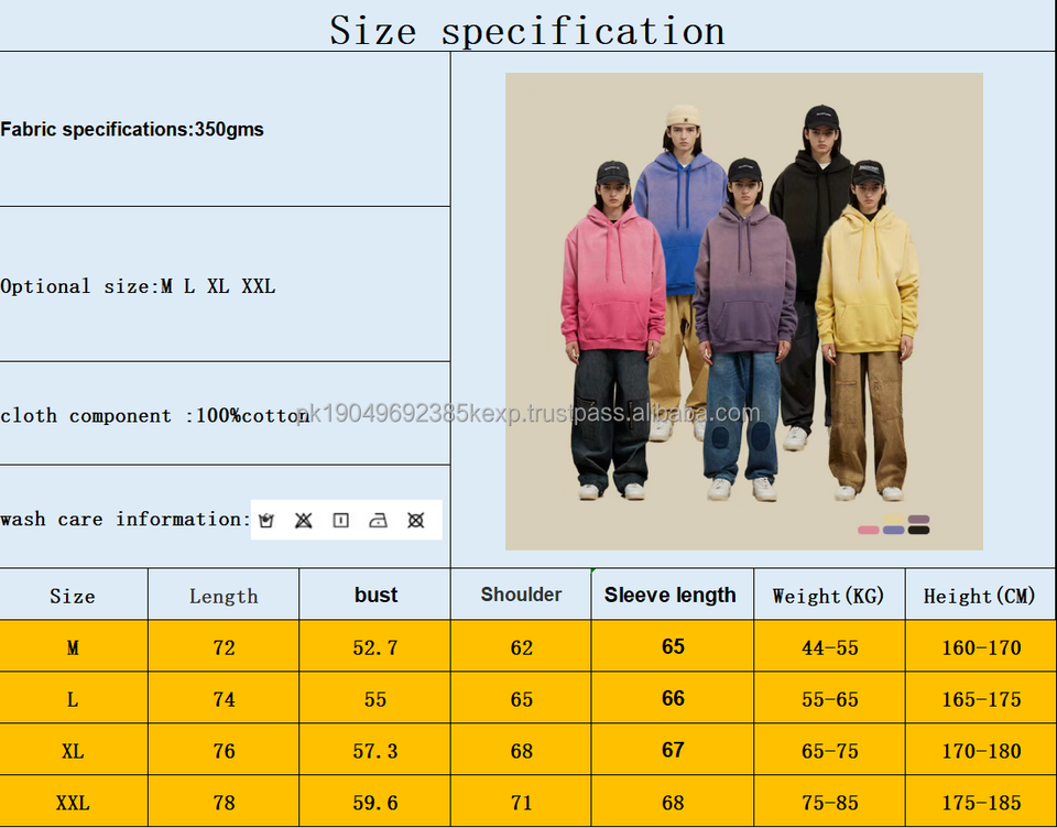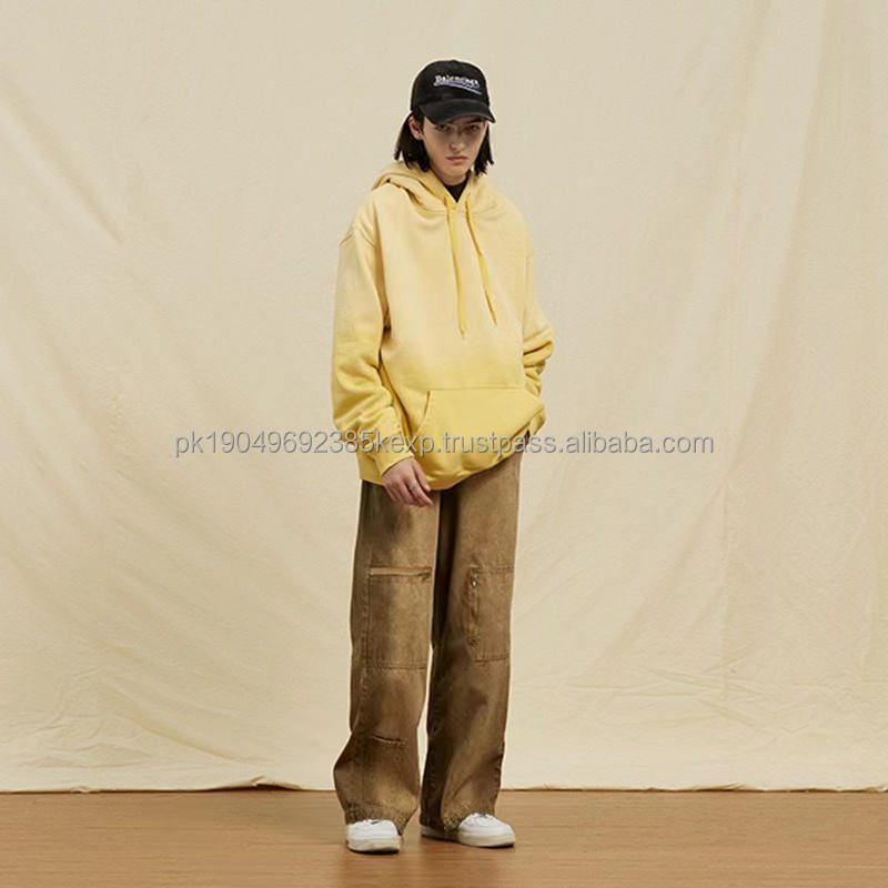 High Quality 350g Heavyweight 100% Cotton Acid Washed Hoodie Oversized Long Sleeve Blank Hoodies