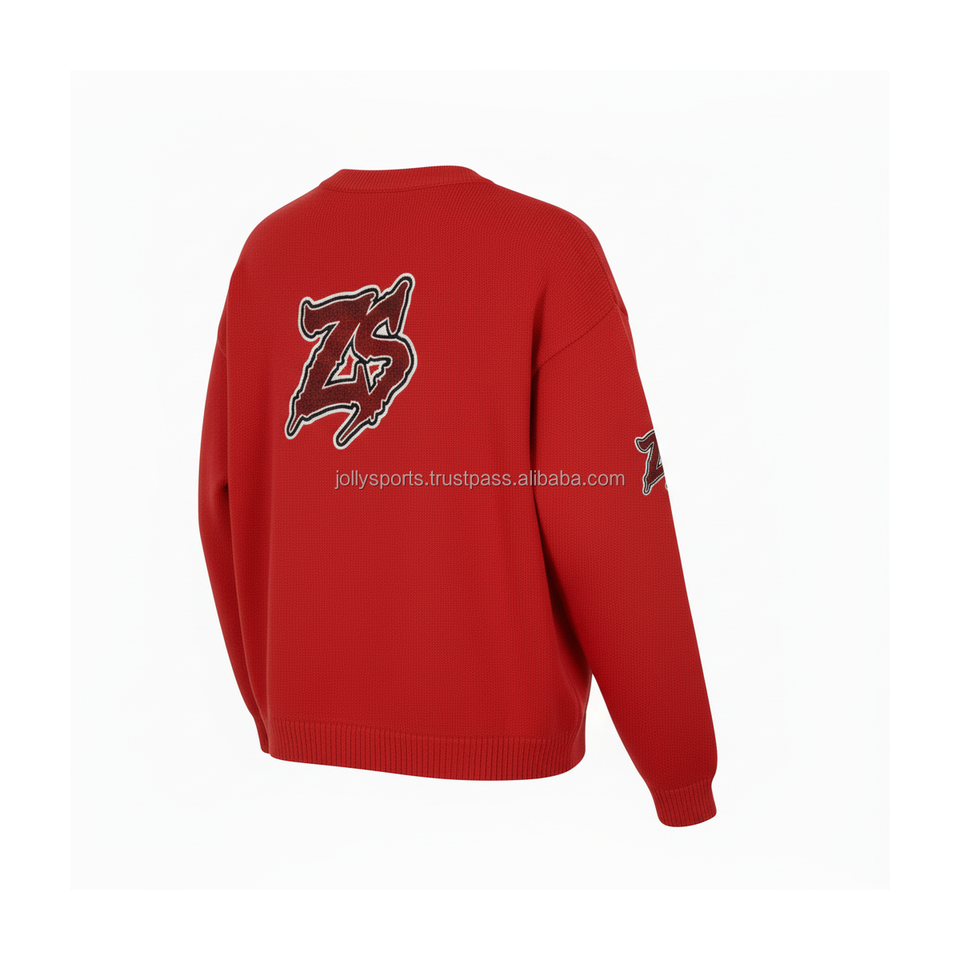 High Quality 360 GSM Cotton Polyester Sweatshirt Red Color Warm Pullover Custom Puff Embroidery Logo Design Basics Sweatshirt