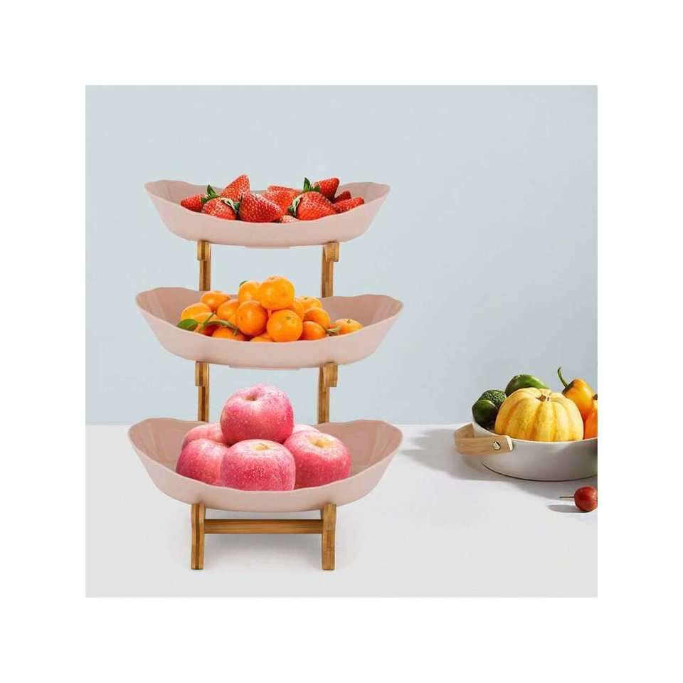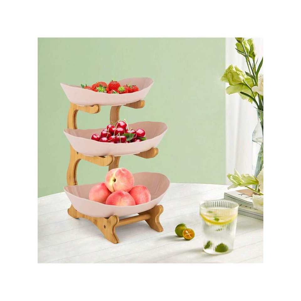 High Quality 4.5 Inch Bamboo 3-Tier Serving Bowls with Stand PP Fruit Bowl Snack Tray Plate Rack for Party Wedding