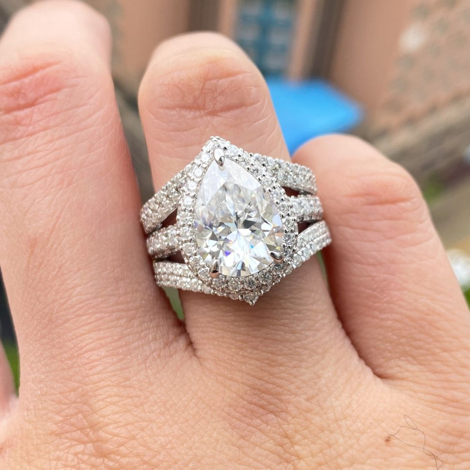High Quality 4.70 Carat Pear Cut Moissanite Diamond Ring 18k White Gold Original Jewelry for Her on Factory Price