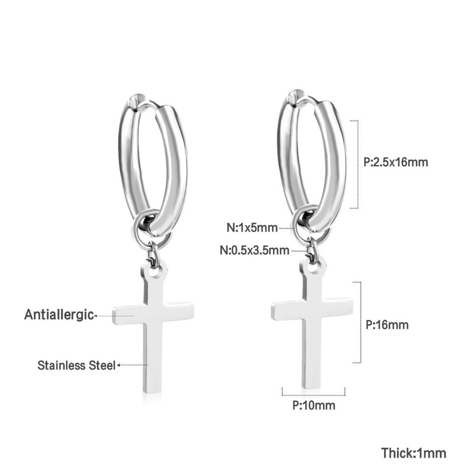 High Quality 4 Color Stainless Steel Cross Hoop Earrings Hiphop Jewelry Earrings for Women/Men