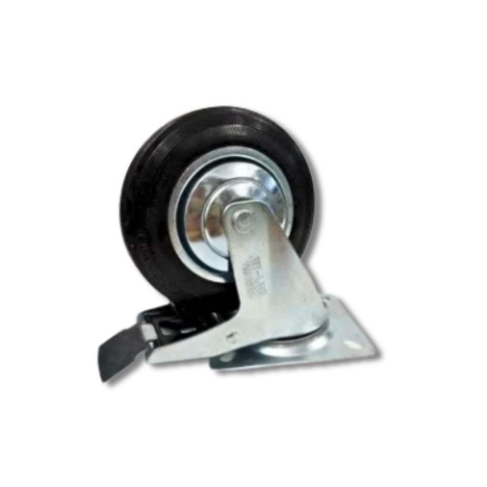 High Quality 4 Inch Rubber Swivel Caster Wheel Lock Brake Steel Plate | Heavy Duty 360 Degree Trolley Wheel for Furniture