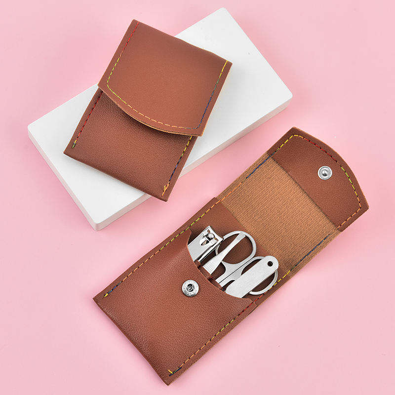 High Quality 4-Pcs Stainless Steel Manicure & Pedicure Set Travel-friendly with PU Foot Box Nail Care Cuticle & Folding Buckle