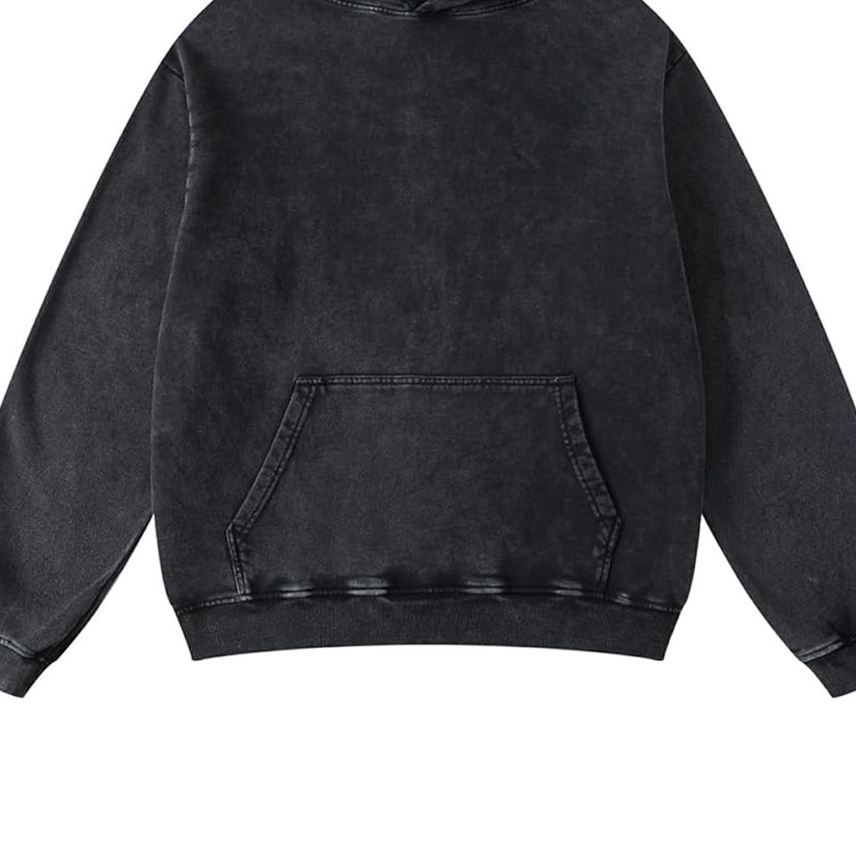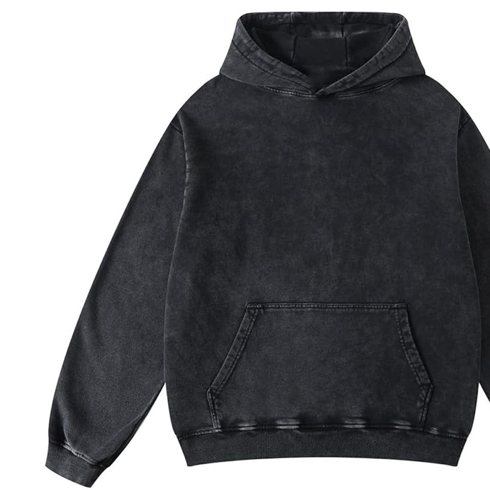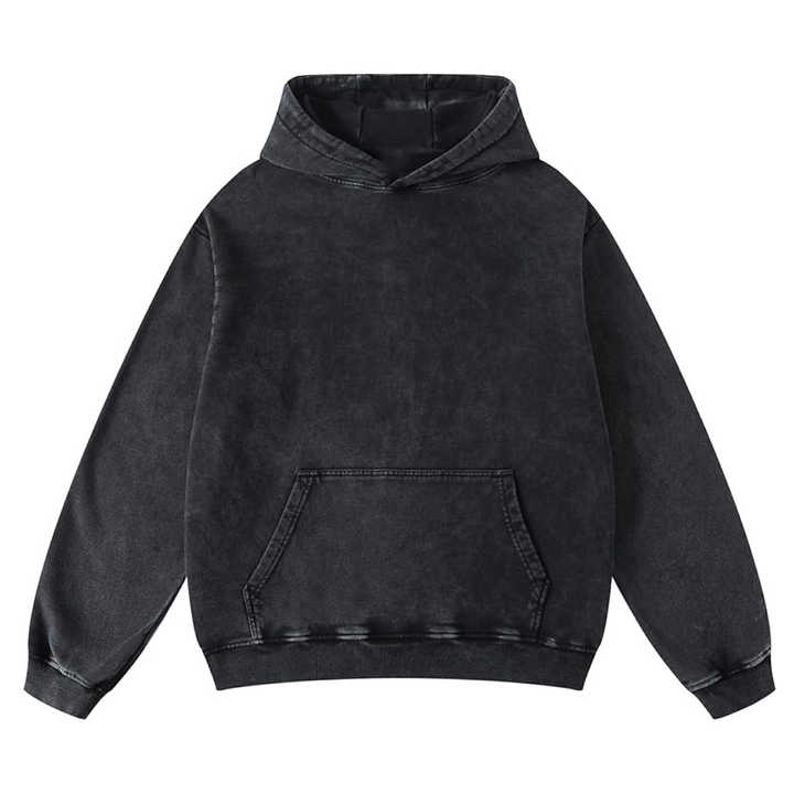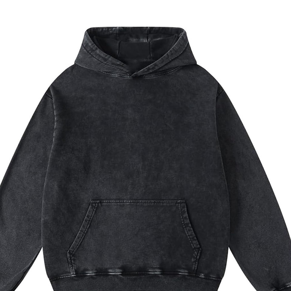 High Quality 420 GSM Acid Wash Winter Hoodies Custom Logo Men Distressed Dark Grey Vintage Washed 100% Cotton Oversized OEM