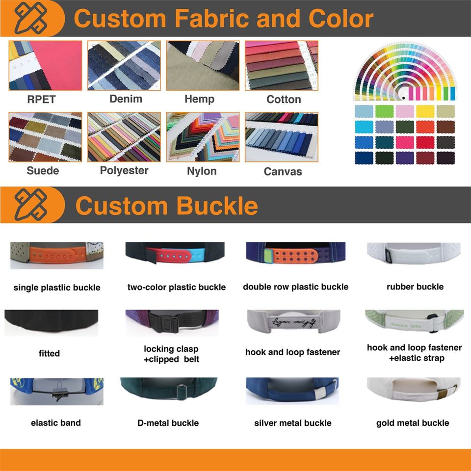brim/visor, front panel, Left panel, Right Panel, back curved partLogo position